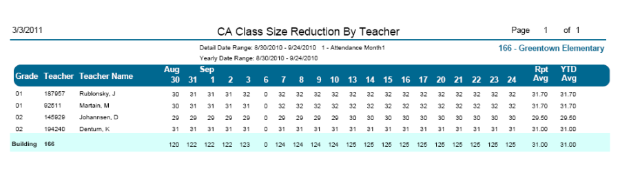 Note: the Day Totals Calculation must be run for every building and attendance interval covering the date range desired to report on the Class Size Reduction by Teacher Report.