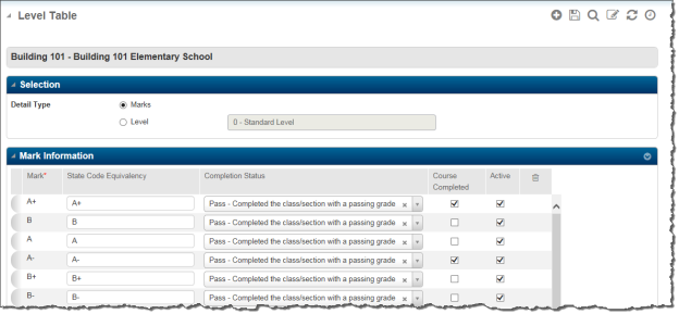 Completion Status | Select the appropriate Completion Status code for each mark to report the Outcome Code for TCS Reporting. |