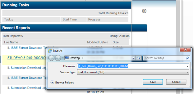 The Extract ISBE Submission Files option will create the files to send to the State.
