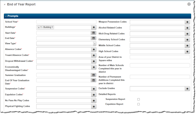 | School Year | Required. Default to current School Year if blank. |