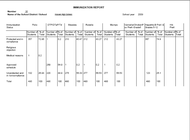 Sample IL Immunization Report