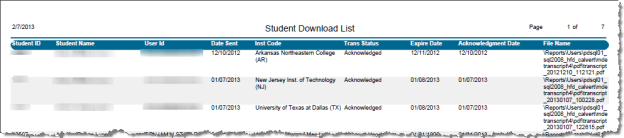 The search results returned will provide the same information as the Submissions Status tab and the e-Transcript History page. It also includes an additional status of 'Not Sent' for any transcript records that have been saved, but not sent.
