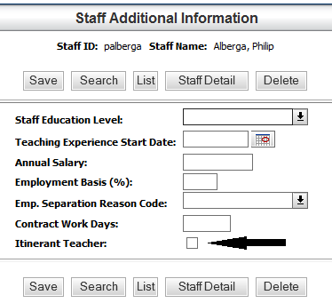 A new field, Itinerant Teacher, has been added. When checked, a 'Y' will be entered into Field 56 – Itinerant Teacher.