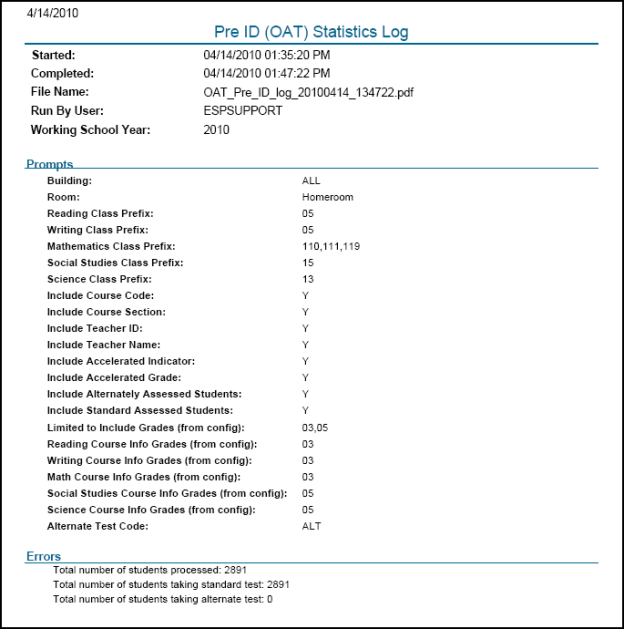 Use the Pre-ID Configuration option to define how students are identified for alternate assessments and what grades to include in Pre-ID files for each test.