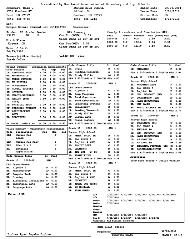 The Gender field will not be present in the OR Student Transcript file as per the DOE requirements.
