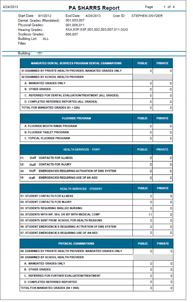 Sample SHARRS Medical Report