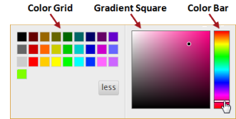 Define a color on the Gradient Square by dragging the dot. The resulting color displays in the code's original color box.