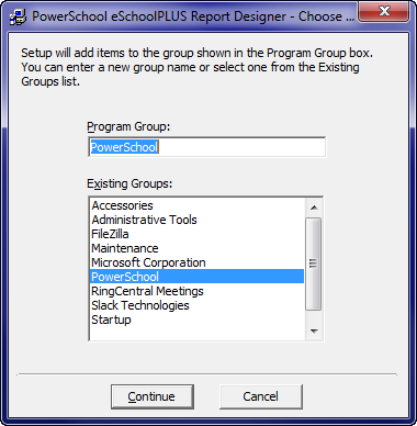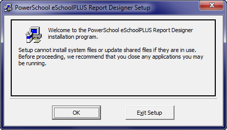 On the PowerSchool eSchoolPLUS Report Designer Setup window, click OK.