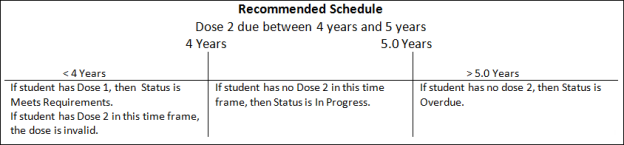 The first series date is checked against the recommended schedule, which is based on the student's age at the time of the dose. All doses must meet the recommended schedule in order for it to be followed.