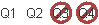 Example: A course meets for two marking periods. Course Length is set to Individual Marking Period(s) and Duration Type is set to Q - Quarter. For each course-section, click the two quarters that do not apply to the course-section so that the No symbol displays on those quarters: