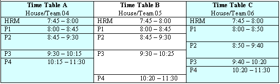 Course: Homeroom Period: HRM House/Teams: None | This course would be valid because all timetables have the same starting and ending times for the HRM period. |