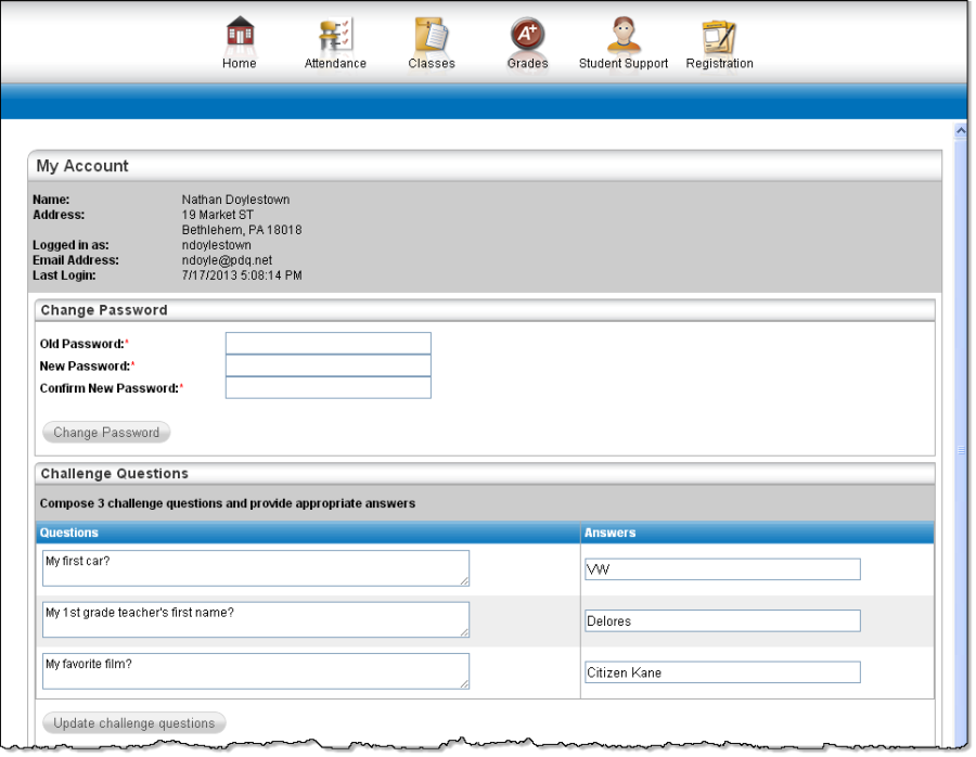 If you answered the challenge question(s) correctly, the My Account page displays. If you do not answer the challenge questions correctly, you may try again or contact your school district for assistance.