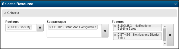 Refer to the Notifications District or Building Setup page for the security resources required for certain notifications.