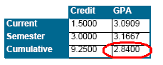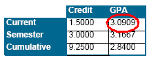 Values in the Credit Column of the Credit/GPA Grid are Incorrect.