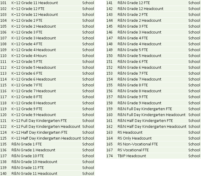 You can read the data knowing the position of the School Code, cross-referencing the Field Number with the list provided below, and then reading the Amount and Decimal Amount values. Field Numbers are as follows: