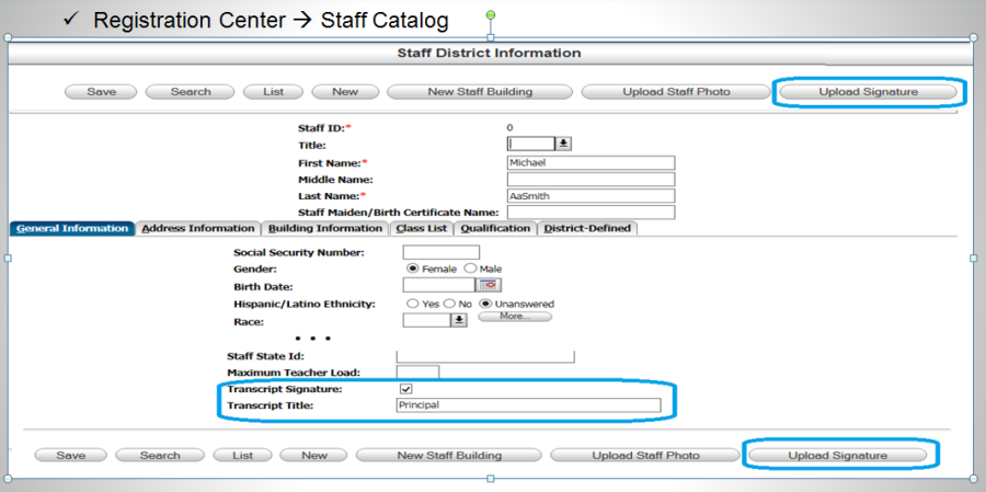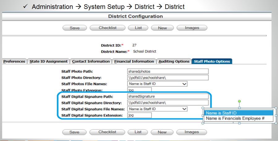 The file names of staff signature images can be either the Staff id or the Financials Employee Number from Staff Information.